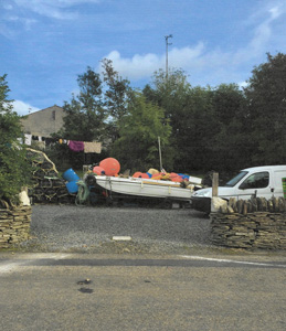 LOBSTER FISHERMAN'S HOME Tucked away behind the main street lives Kevin McPhee the lobster fisherman. In the winter his large lobster boat is moved here from the harbour by crane. I love to see the creels piled up in his garden next to a refrigerated cabin, which hums away, keeping the lobsters cool until collected. It fell silent during the lockdown in the early days of the pandemic. Most of the catch is exported to the restaurants of Spain and France. |
