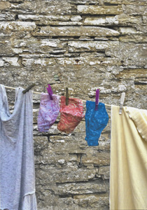SIGN OF THE TIMES Spotted on a local washing line. Not colourful bikini tops but anti viral face masks. |