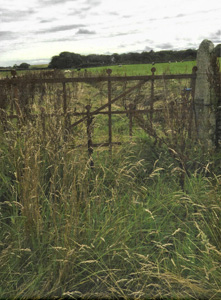 GATE On my walks I like to look at the different types of field gates. Prior to the modern standardised tubular metal variety, gates used to be made by the local blacksmith and had character. This is an example of an "arts and crafts " design apparently unique to the Olrig estate. Sue Pargeter, local artist and design enthusiast has located and sketched half a dozen of them. All similar but each one unique in its detail. She hopes to arrange an exhibition of her gate works for Castlehill Centre, complemented by artefacts and photos from our collections. |