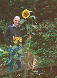 SUNFLOWERS IN CASTLETOWN My wife and I have lived in our house in Castletown for nearly thirty-five years. Both of us enjoy working in our garden which is surrounded by mature trees affording good shelter from the worst of the Caithness weather. Most of the garden is laid to lawns, shrubs and flower beds, however we successfully grow fruit, including blackcurrants, tayberries, loganberries, brambles, apples and rhubarb, plus a regular healthy crop of garden peas. This year Liz nurtured two different varieties of sunflowers - the classic tall ones and also a shrub variety which produced large numbers of dense golden heads, similar to ball dahlias. Whilst Caithness can on occasion live up to its reputation of horizontal rain and gale force winds for the most part the weather is much less dramatic, and with a bit of shelter and care Castletown gardens can be very productive, with many providing impressive displays of colour. |