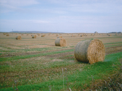 THE SILENT EVOLUTION OF BALES I well remember as a young lad some 50+ years ago getting chased by the farmer for playing on his haystacks at Ormlie Farm at the edge of Thurso. At that time cut hay was allowed to dry then gathered in 'coles' (bunches) before being built into stacks for storage and subsequent use as feed for the animals over the winter months. Shortly after it became more common for hay and straw to be bound into square bales using a mechanical 'baler' towed behind a tractor. The bales were easily handled by hand and ideally shaped for stacking for storage over the winter. In my 20s and 30s I spent many a summer helping out at hay time at my wife's family farm at Larel. I was certainly a lot fitter in those days! Nowadays most farmers make large round bales as shown in the photograph, taken at a field at Murkle just west of Castletown. The overall handling is reduced, but manual handling is out of the question. The latest innovation is large square bales, again requiring mechanical handling, but offering greater packing density in storage. The photograph is therefore a moment in time in the evolution of hay and straw handling - who knows what will be the common practice in twenty years time? |