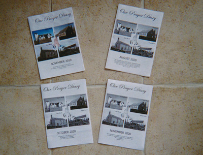 BLACK AND WHITE - A SIGN OF THE TIMES Olrig Parish Church in Main Street, Castletown currently operates in a union with three other churches - Dunnet, Canisbay and Keiss. Each month, one of the parishioners collates and publishes a 'Prayer Diary', offering thoughts of fellowship and worship for each day of the coming month. The Prayer Diary used to be printed and distributed to all the parishioners in the union, however with the advent of the Covid pandemic this proved to be difficult. Not to be defeated the Prayer Diary is now emailed out to everyone with a pre-registered email address, and also to volunteers in each parish who print off the Diary and distribute by hand to those who are unable to access the Diary online. The photo reflects the impact of Covid whereby the November 2019 edition was printed in full colour, but the subsequent August, October and November 2020 editions are in black and white, having been printed off on our home laser printer. |