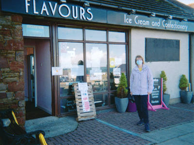 A SIXPENNY ONE PLEASE.... Whilst it is the 'holy grail' for travellers on the North Coast 500, local folk also enjoy a day out to John o'Groats. We often drop into Stacks Bistro for an afternoon binge on their superb range of home bakes, or an ice cream at Flavours. The photo reflects, once again, the impact of Covid, whereby only one patron is permitted into the shop at a time and 2m social distancing applies in the queue outside. The Caithness Fudge ice cream is to die for…… |