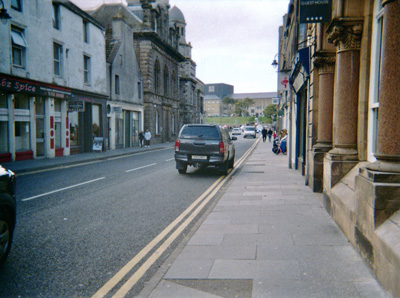 STREET SCENE, WICK, WITH IRONMONGERS WARES ON SIDEWALK Although the question about parking or not is more or less a local issue, the question of this road as thoroughfare (passing people and vehicles through without stopping) or as a shopping street is symptomatic of the whole difference in viewpoint, I think between those of us who live here and those using the NC500. |