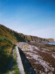 A VIEW OF THE STEPS AT BROUGH LEADING DOWN TO THE BEACH Prior to the building of the pathway and those steps, only very hardy individuals could get over the seawall and down to the beach (and back up again). Those unassuming looking steps so easily taken for granted required thousands of volunteer hours: drafting proposal to Paths for All, getting support for the application, and then the hard graft of making the path and the steps. Maintaining or expanding existing infrastructure is hard work and very expensive. Brough is a living harbour and the last of the little harbours to still have its own committee. |