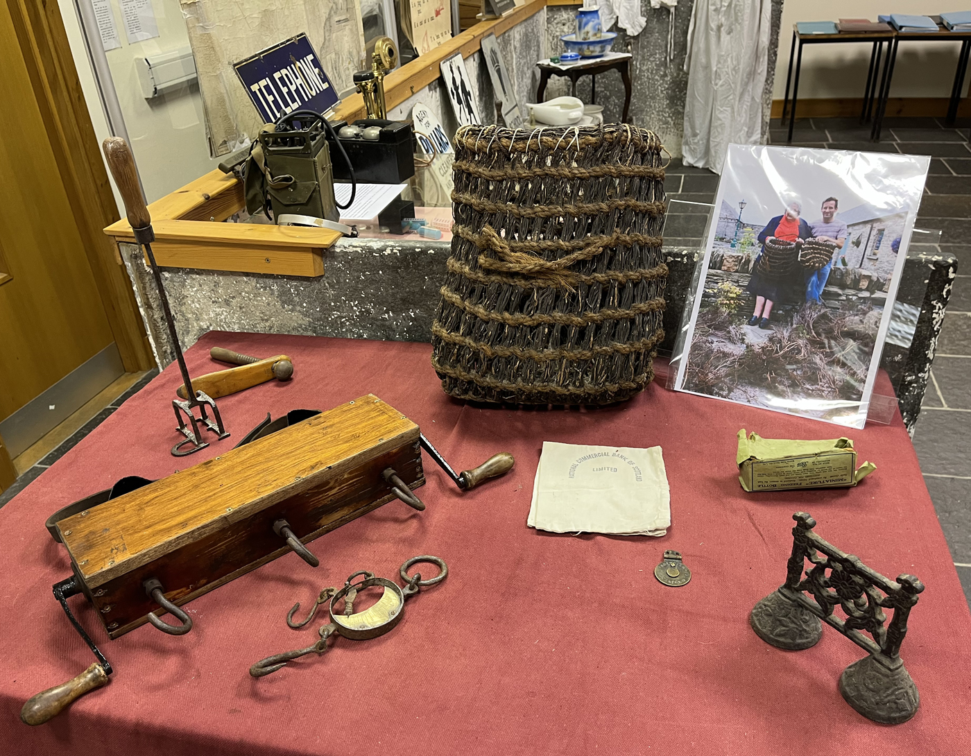 During a well-attended public talk on the Saturday night Tim explained the research he had done on the technique, known as Neolithic braid used in the basket's construction, examples of which are found in diverse locations from Africa to Europe. Apart from a similar heather made basket in Orkney, no other example has been found in Britain. His investigations continue and he is anxious to appeal to any locals who may have seen such baskets, to get in touch with Castlehill Heritage Centre.