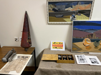 Open Day at Castlehill Heritage Centre a great success!It was the last day of the "Moving in, Moving on" exhibition. To mark the occasion CHS offered a variety of activities. As well as the display on immigration and emigration, and the much appreciated World War Two display, the North Highland Wood-Turners opened their studio to visitors. Visitors had the chance to enter a quiz on the stories featured in the current display and the opportunity to plot on a world map where John Polson might have emigrated to in the 1800s. Identifying by-gone tools and implements was easy enough for more mature visitors but taxed the imagination of the young. Fossil fish rubbing with wax crayons entertained some, while budding archaeologists were able to use a trowel to reveal the hidden artefacts in the sand trays.